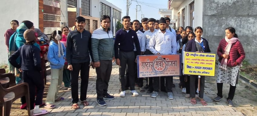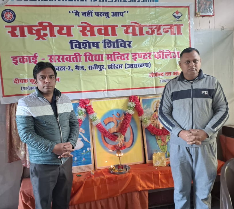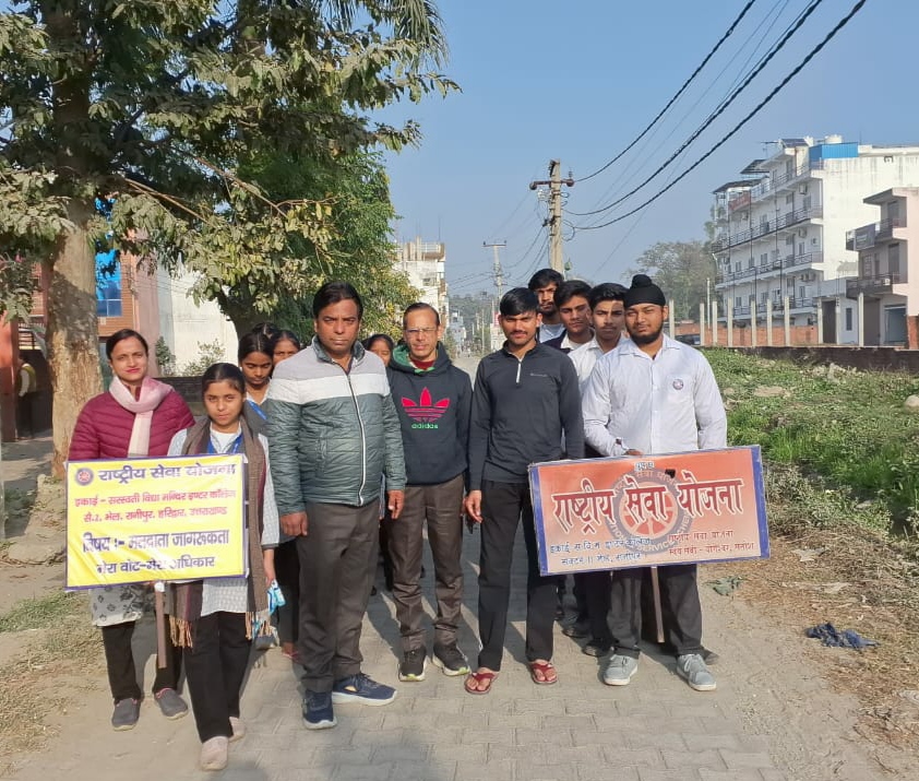 दिनांक 6 जनवरी 2026 को सरस्वती विद्या मंदिर इंटर कॉलेज, सेक्टर–2, रानीपुर, हरिद्वार की राष्ट्रीय सेवा योजना (NSS) इकाई द्वारा आयोजित सात दिवसीय विशेष शिविर के छठे दिन का आयोजन अत्यंत सफलतापूर्वक किया गया। आज के दिन का विषय “मतदाता जागरूकता” निर्धारित किया गया था, जिसका उद्देश्य ग्रामीण नागरिकों एवं स्वयंसेवियों में लोकतांत्रिक मूल्यों तथा मतदान के महत्व के प्रति जागरूकता उत्पन्न करना रहा।