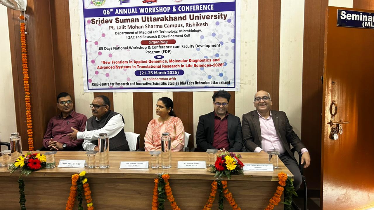 पंडित ललित मोहन शर्मा परिसर, ऋषिकेश (श्री देव सुमन उत्तराखंड विश्वविद्यालय) के मेडिकल लैब टेक्नोलॉजी विभाग में आज पांच दिवसीय राष्ट्रीय कार्यशाला, सम्मेलन एवं संकाय विकास कार्यक्रम (FDP) का विधिवत उद्घाटन हुआ।