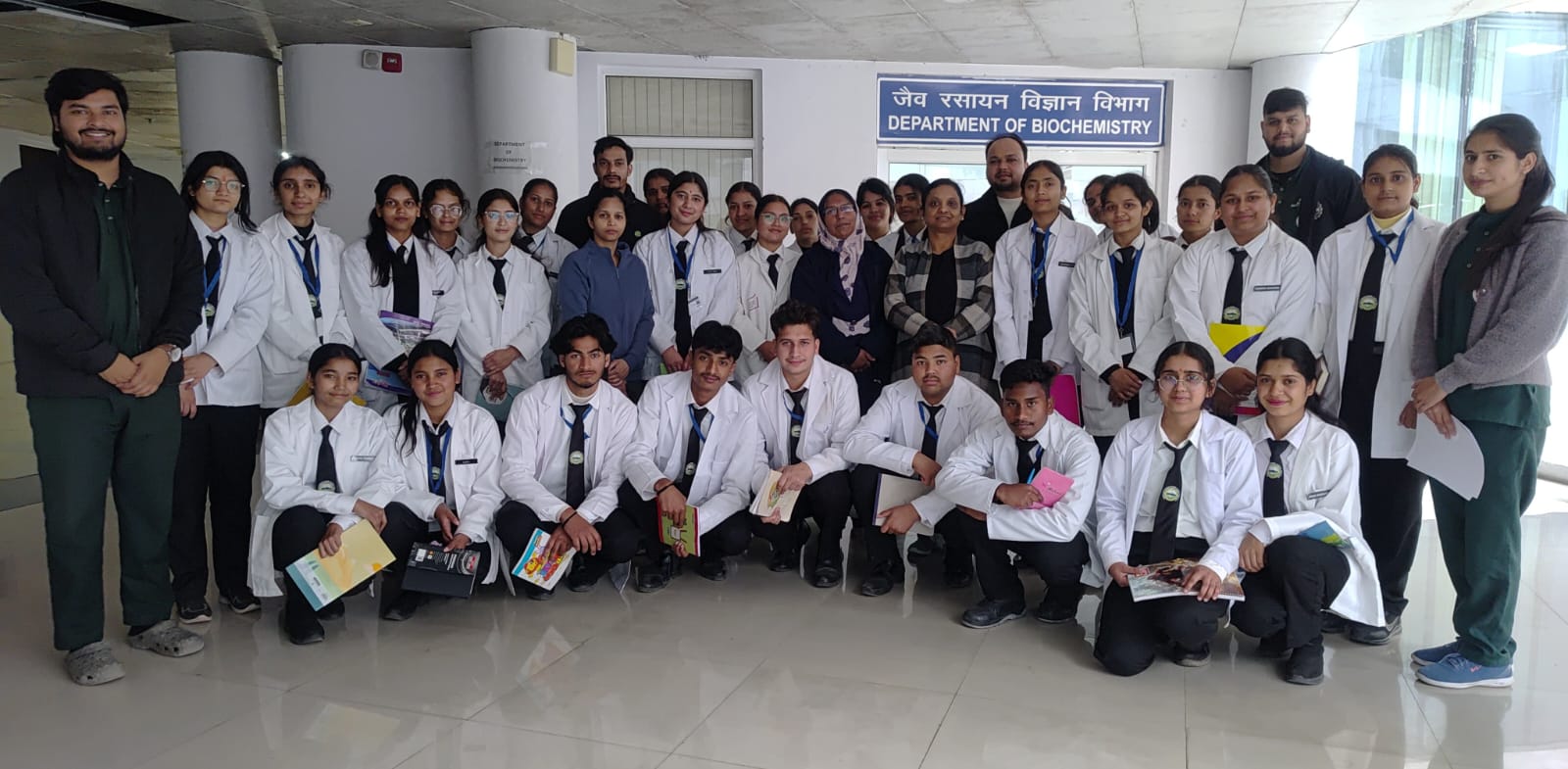 आज दिनांक 18 दिसंबर 2025 को पंडित ललित मोहन शर्मा परिसर ऋषिकेश के एम०एल०टी० विभाग से प्रथम वर्ष के छात्र-छात्राओं को शैक्षिक भ्रमण के लिए एम्स ऋषिकेश में जैव रसायन विज्ञान विभाग में ले जाया गया जिसमें उन्हें नैदानिक रसायन विज्ञान,गैस्ट्रो बायोकेमिस्ट्री, एंडोक्रिनोलॉजी, न्यूरो बायोकेमिस्ट्री, ऑनको बायोकेमिस्ट्री एवं अनुसंधान प्रयोगशालाओं से संबंधित विभिन्न प्रकार की तकनीकों के बारे में समझाया गया।