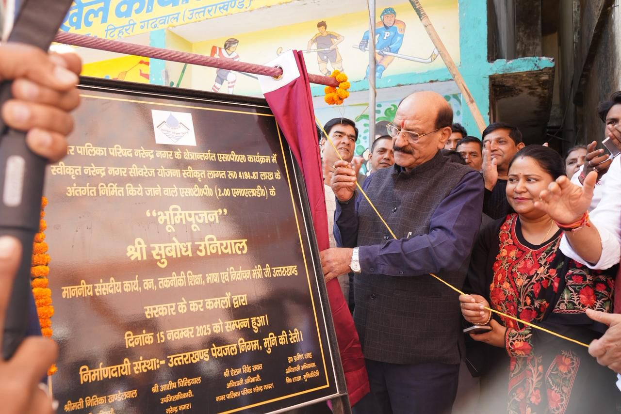 नरेंद्रनगर को अग्रणी पर्यटन नगरी बनाने के लिए 418.87 लाख ( चार हजार एक सौ चौरासी करोड़ सत्तासे लाख) रुपये की लागत से बनाये जाने वाले आधुनिक सीवेज ट्रीटमेंट प्लांट का भूमिपूजन कैबिनेट मंत्री सुबोध उनियाल ने किया।