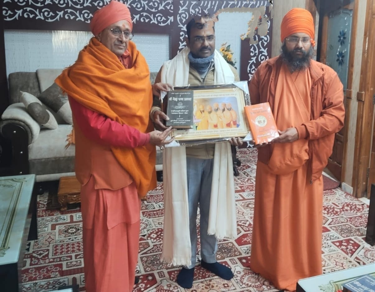 हरिद्वार- कनखल स्थित श्री पंचायती अखाड़ा निर्मल के कोठारी महंत जसविंदर सिंह महाराज के संयोजन में अखाड़े के संतों ने दसवें सिख गुरू गुरू गोविंद सिंह के जीवन पर गुरू दशमेश के अदम्य शौर्य की गाथा पुस्तक के लेखक हरिराम भार्गव व हेतराम भार्गव को सम्मानित किया है।