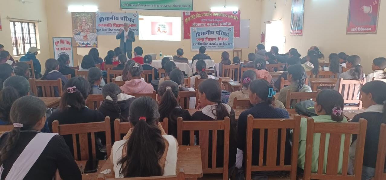 फूल सिंह बिष्ट राजकीय महाविद्यालय नौघर लंबगांव, टिहरी गढ़वाल में आज दिनांक 1 दिसंबर 2025 को “अंतरराष्ट्रीय एड्स दिवस” के उपलक्ष में जंतु विज्ञान विभाग (डॉ नीलम सैनी) एवं वनस्पति विज्ञान विभाग (श्रीमती प्रियंका डिमरी) संयुक्त तत्वाधान में एकदिवसीय कार्यशाला का आयोजन किया गया ।।