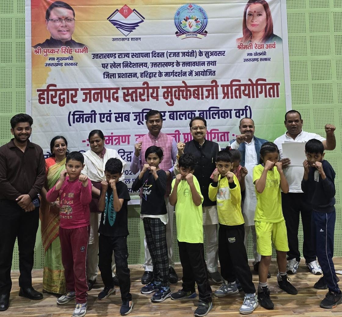 हरिद्वार, 9 नवम्बर। राज्य स्थापना दिवस रजत जयंती के अवसर पर खेल विभाग एवं जिला प्रशासन हरिद्वार के संयुक्त तत्वावधान मे रोशनाबाद स्टेडियम मे मिनी एवं सब जूनियर बालक बालिका वर्ग की जनपद स्तरीय मुक्केबाजी प्रतियोगिता का आयोजन किया गया।