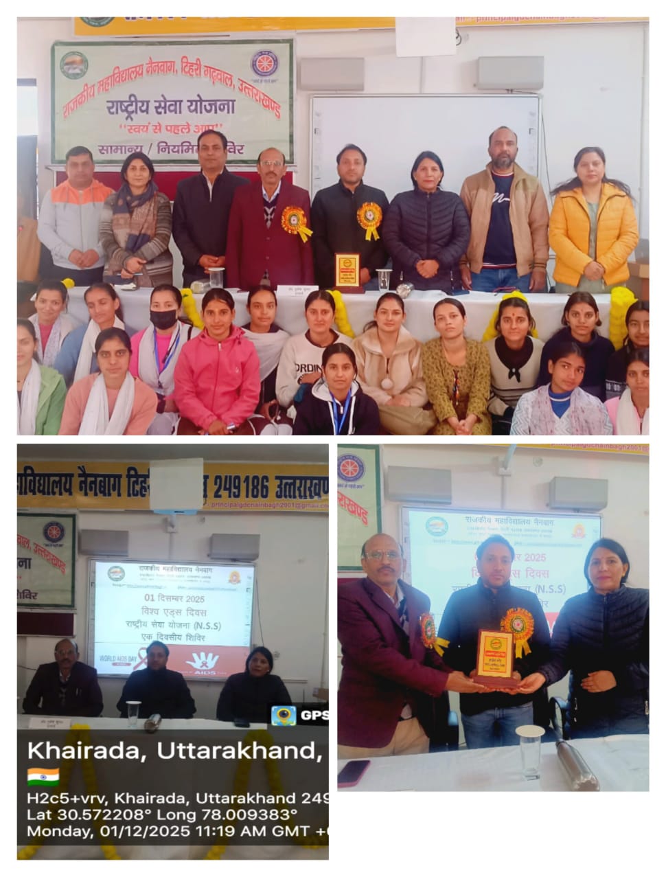 आज दिनांक 1 दिसंबर 2025 को राजकीय महाविद्यालय नैनबाग टिहरी गढ़वाल की राष्ट्रीय सेवा योजना इकाई ने विश्व एड्स दिवस की अवसर पर एक दिवसीय कार्यक्रम का आयोजन किया।