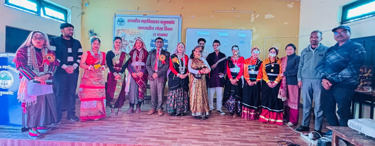 राजकीय महाविद्यालय बलुवाकोट में जनजातीय गौरव दिवस बड़े ही उल्लास, सांस्कृतिक गरिमा और उत्साहपूर्वक मनाया गया। यह कार्यक्रम समाजशास्त्र विभाग तथा भूगोल विभाग के संयुक्त तत्वाधान में आयोजित हुआ।
