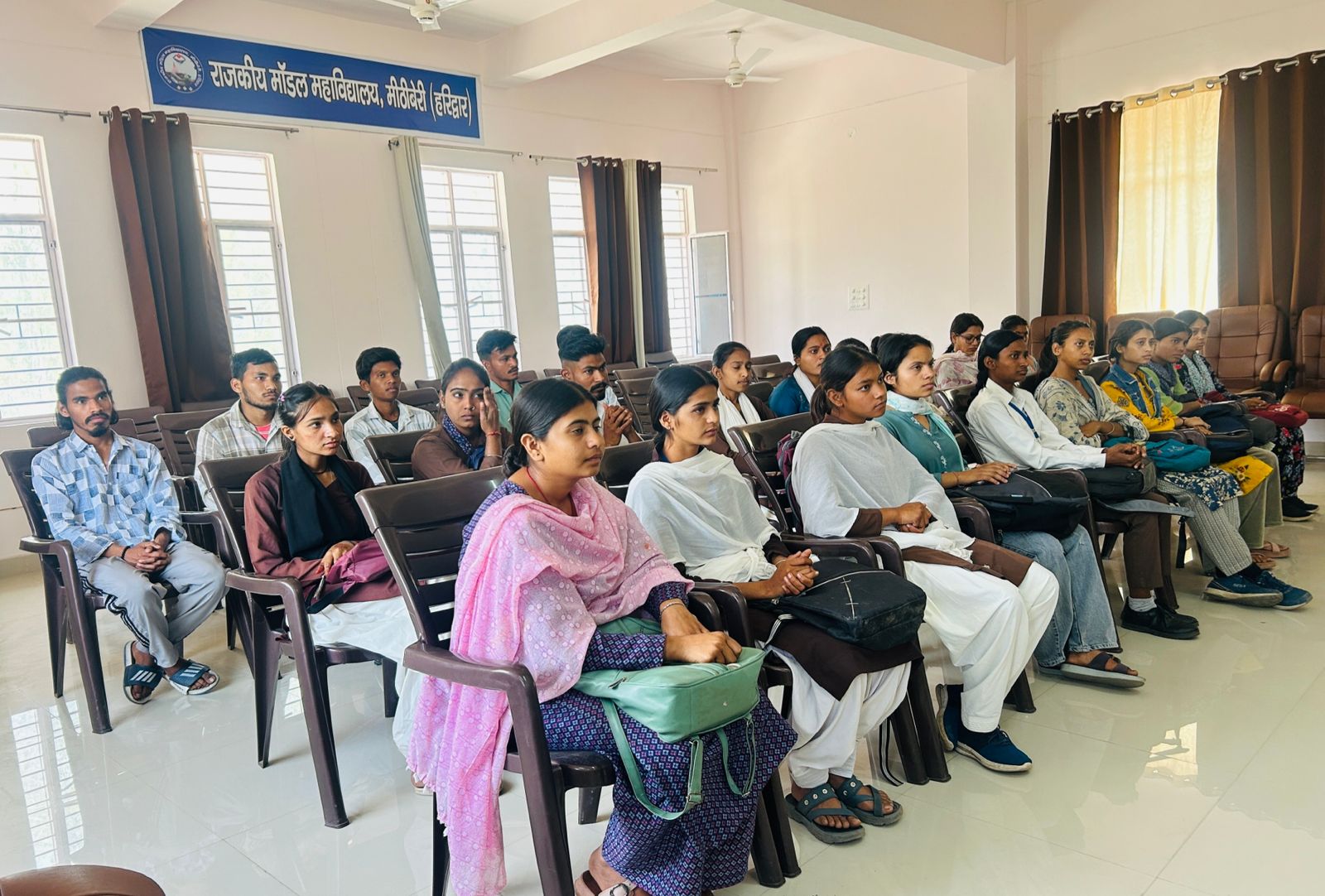 राजकीय मॉडल महाविद्यालय मीठीबेरी में आई० क्यू० ए० सी० के अंतर्गत करियर काउंसलिंग कार्यक्रम का आयोजन किया गया। आज के कार्यक्रम का शुभारंभ महाविद्यालय के प्राचार्य प्रो० अर्चना गौतम एवं मुख्य अतिथि के रूप में महाविद्यालय में आए भारतीय स्टेट बैंक, लालढांग के मुख्य प्रबंधक के द्वारा माँ सरस्वती के समक्ष द्वीप प्रज्ज्वलन करके किया गया। उन्होंने छात्र-छात्राओं को स्नातक करने के पश्चात भविष्य में रोजगार प्राप्त करने हेतु कठिन परिश्रम करने पर जोर दिया।
