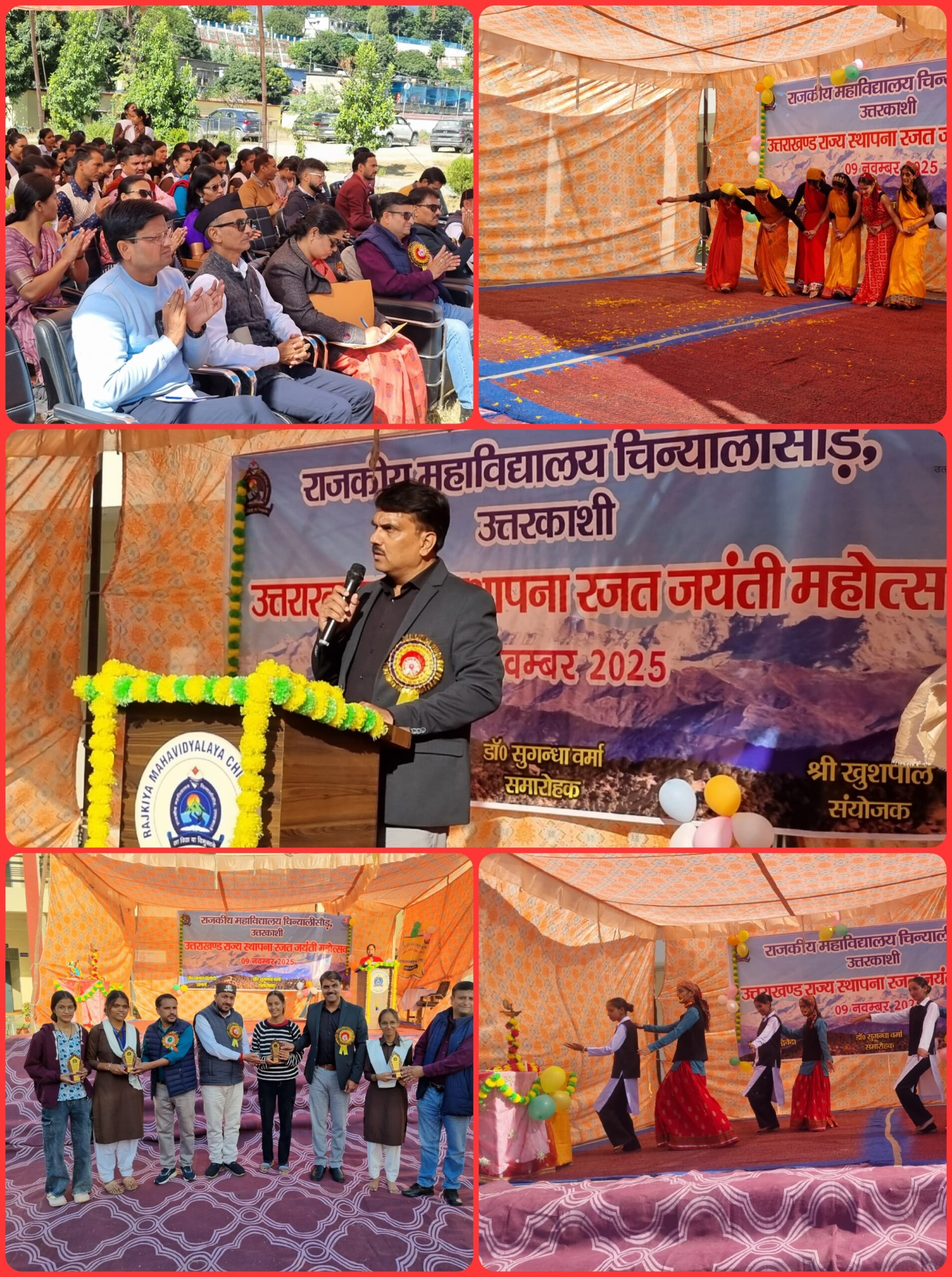 राजकीय महाविद्यालय चिन्यालीसौड़ में उत्तराखंड राज्य स्थापना रजत जयंती समारोह बड़े ही उत्साह और भव्यता के साथ मनाया गया। महाविद्यालय की सांस्कृतिक समिति के संयोजन एवं तत्वावधान और राष्ट्रीय सेवा योजना इकाई के तहत कार्यक्रम का सफल आयोजन किया गया।