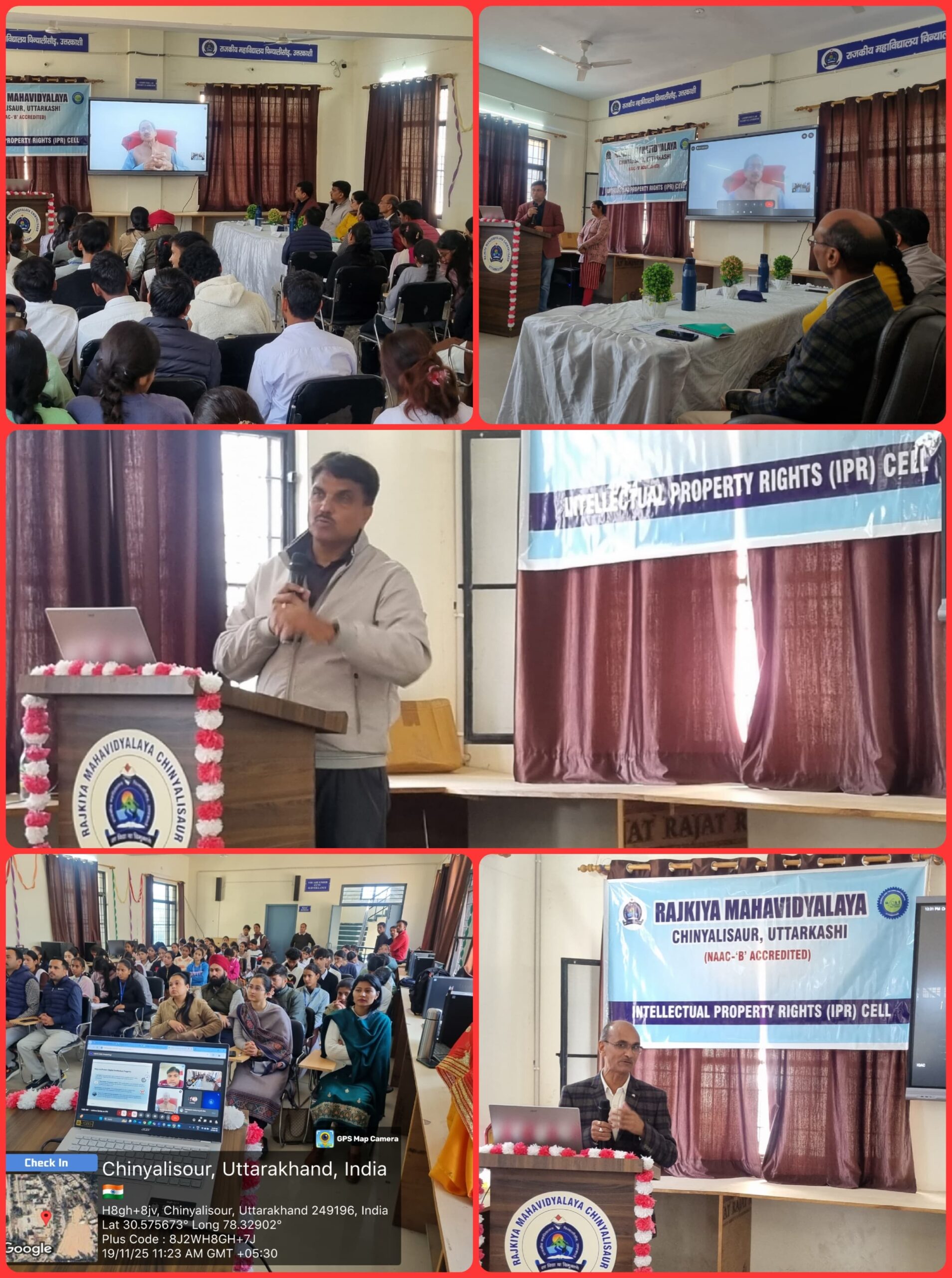 राजकीय महाविद्यालय चिन्यालीसौड़ के IPR सेल एवं आंतरिक गुणवत्ता आश्वासन प्रकोष्ठ (IQAC) के संयुक्त तत्वावधान में बौद्धिक संपदा अधिकार विषय पर व्याख्यानमाला के अंतर्गत द्वितीय व्याख्यान का आयोजन किया गया। यह कार्यक्रम उत्तराखंड राज्य विज्ञान एवं प्रौद्योगिकी परिषद (UCOST) के सौजन्य से संपन्न हुआ।