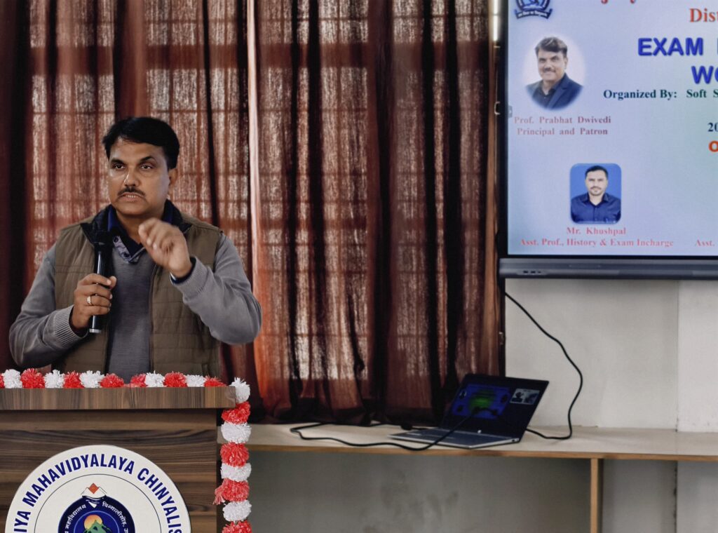 कार्यक्रम की अध्यक्षता महाविद्यालय के प्राचार्य एवं संरक्षक प्रो. प्रभात द्विवेदी जी ने की। अपने अध्यक्षीय उद्बोधन में प्रो. द्विवेदी ने विद्यार्थियों को संबोधित करते हुए कहा कि परीक्षा केवल अंक प्राप्त करने का माध्यम नहीं, बल्कि आत्म-अनुशासन, समय प्रबंधन और धैर्य की वास्तविक परीक्षा भी है। यदि विद्यार्थी सही योजना, सकारात्मक सोच और निरंतर अभ्यास के साथ तैयारी करें तो किसी भी परीक्षा को सरल बनाया जा सकता है। उन्होंने आगे कहा कि महाविद्यालय द्वारा समय-समय पर इस प्रकार की कार्यशालाएँ आयोजित कर विद्यार्थियों में आत्मविश्वास, लक्ष्य-निर्धारण एवं तनाव-प्रबंधन जैसे कौशलों को मज़बूती देने का प्रयास किया जाता है।