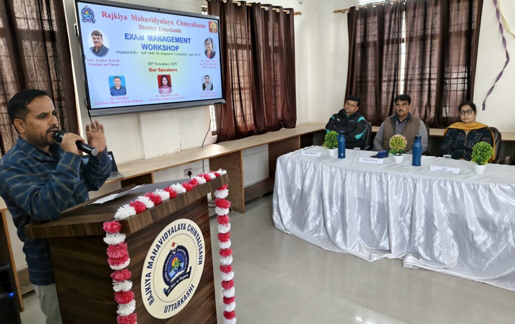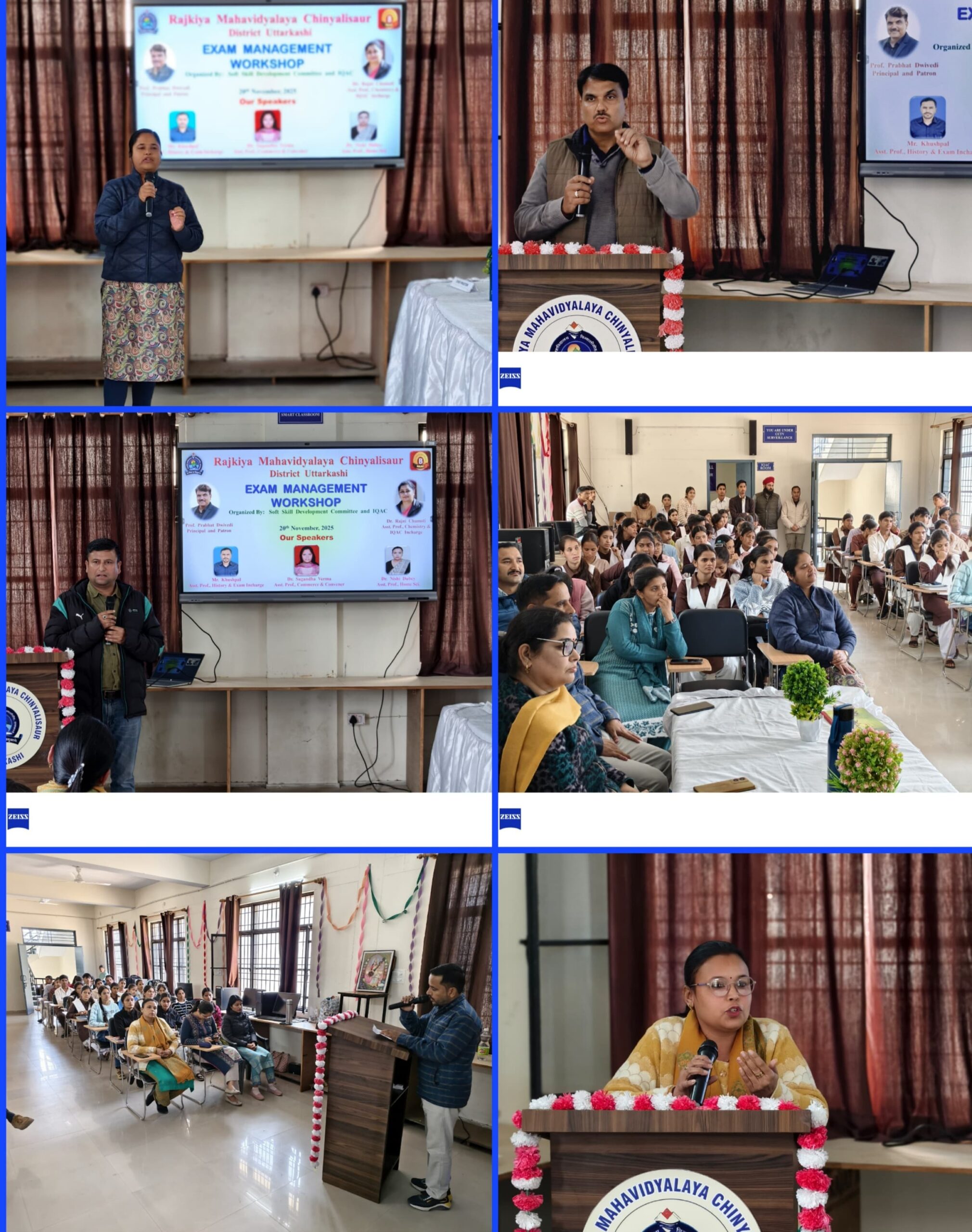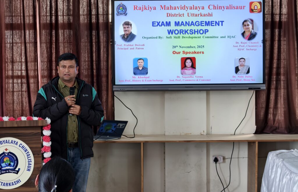 आज दिनांक 20 नवंबर 2025 को राजकीय महाविद्यालय चिन्यालीसौड़ में परीक्षा प्रबंधन कार्यशाला (Exam Management Workshop) का आयोजन किया गया। यह विशेष कार्यक्रम विद्यार्थियों को परीक्षा से संबंधित महत्वपूर्ण जानकारियाँ एवं व्यवहारिक टिप्स प्रदान करने के उद्देश्य से आयोजित किया गया।