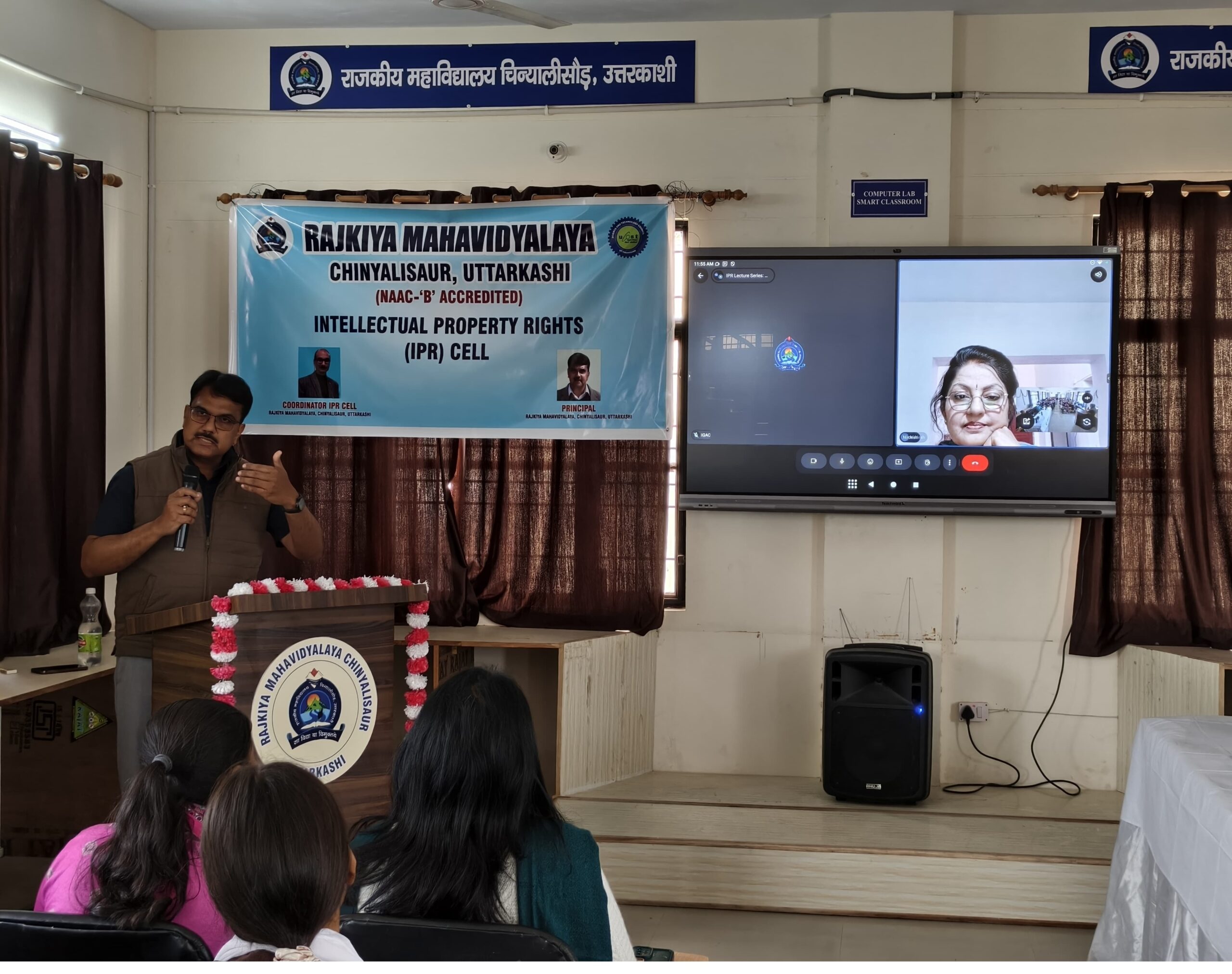 द्वितीय वक्ता के रूप में Uttarakhand State Council for Science and Technology (UCOST) के वैज्ञानिक एवं तकनीकी विशेषज्ञ हिमांशु गोयल जी ने ऑनलाइन जुड़कर “Design and Creative Thinking for Innovative Ecosystem” विषय पर व्याख्यान दिया। उन्होंने नवाचार, डिजाइन थिंकिंग और स्टार्टअप के संदर्भ में बौद्धिक संपदा की भूमिका को रेखांकित किया। उन्होंने बताया कि किस प्रकार रचनात्मक सोच और वैज्ञानिक दृष्टिकोण के माध्यम से एक सशक्त इनोवेशन इकोसिस्टम का निर्माण किया जा सकता है।