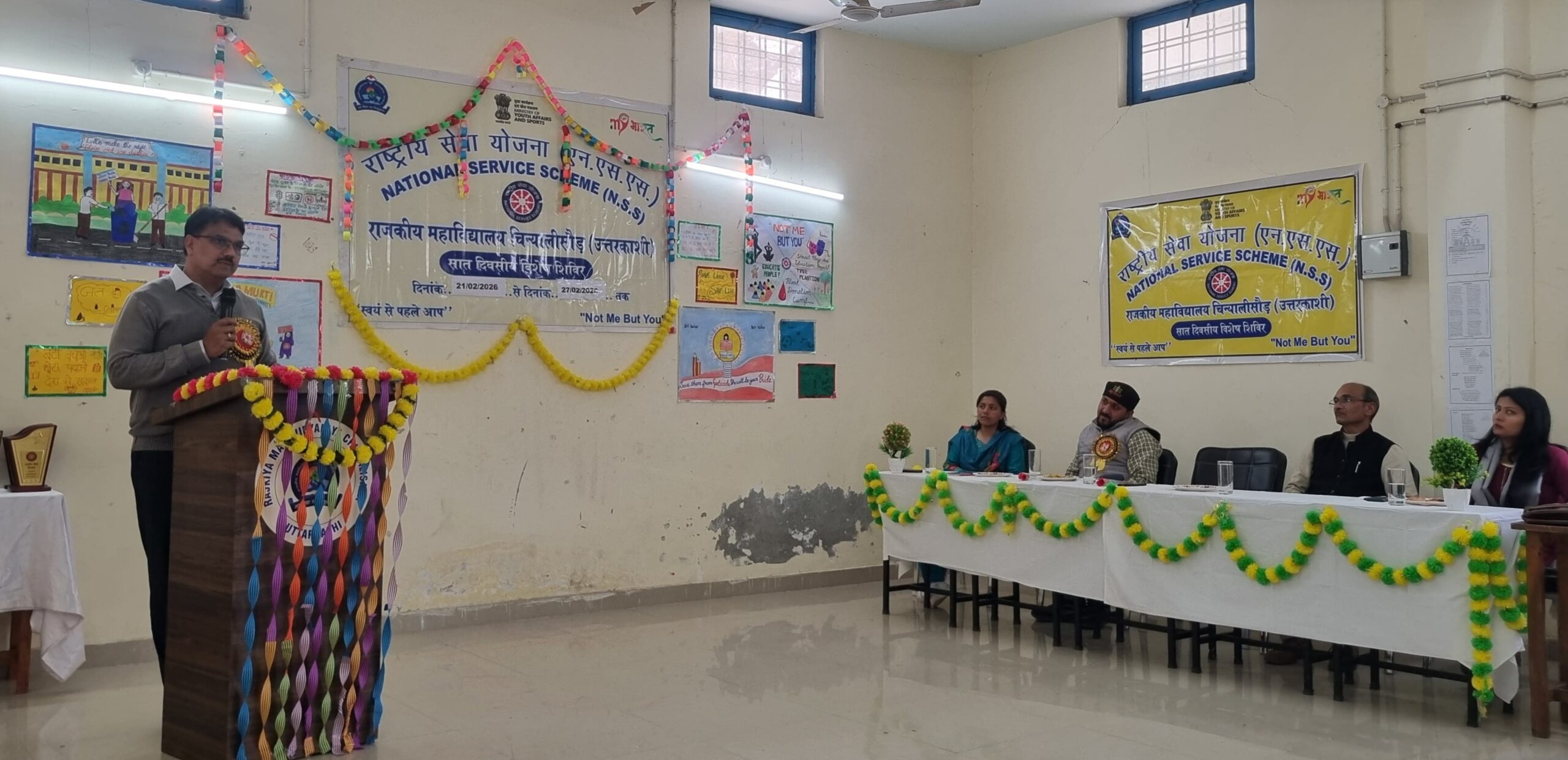 दिनांक 27 फरवरी 2026 को राजकीय महाविद्यालय चिन्यालीसौड़ की राष्ट्रीय सेवा योजना इकाई के सात दिवसीय विशेष शिविर का समापन समारोह सफलतापूर्वक संपन्न हुआ।