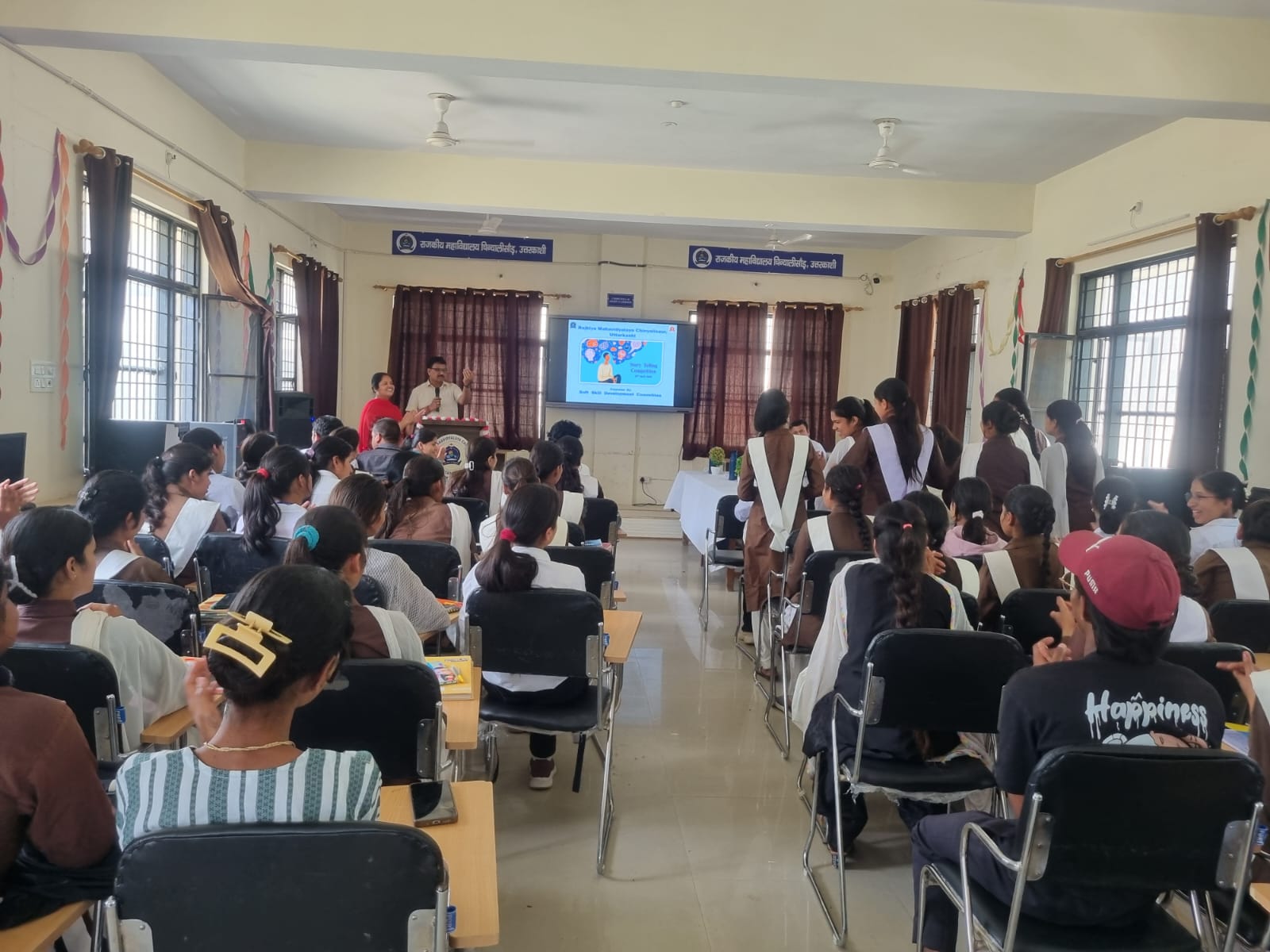 निर्णायक मंडल में हिन्दी विभाग के डॉ. यशवंत सिंह एवं अंग्रेजी विभाग के डॉ. आलोक बिजल्वाण शामिल रहे, जिन्होंने प्रतिभागियों के प्रदर्शन का सूक्ष्म मूल्यांकन किया और उन्हें आवश्यक मार्गदर्शन भी प्रदान किया। महाविद्यालय के प्राचार्य प्रोफेसर प्रभात द्विवेदी ने अपने उद्बोधन में सॉफ्ट स्किल्स के महत्व पर प्रकाश डालते हुए कहा कि वर्तमान प्रतिस्पर्धी युग में केवल शैक्षणिक ज्ञान पर्याप्त नहीं है, बल्कि संप्रेषण कौशल, नेतृत्व क्षमता एवं रचनात्मक सोच जैसे गुण सफलता की कुंजी हैं। इस प्रकार की गतिविधियाँ विद्यार्थियों के व्यक्तित्व विकास, आत्मविश्वास एवं संप्रेषण कौशल को सुदृढ़ करने में महत्वपूर्ण भूमिका निभाती हैं। उन्होंने विद्यार्थियों को ऐसे आयोजनों में बढ़-चढ़कर भाग लेने के लिए प्रेरित किया।