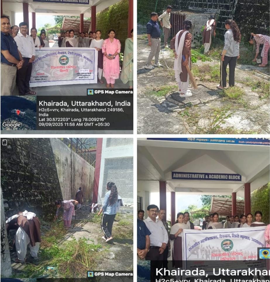 इस कार्यक्रम के तहत स्वच्छता कार्यक्रम का आयोजन किया गया।हिंदी विभाग की विभाग अध्यक्ष डॉक्टर मंजू कोगियाल और इतिहास विभाग के विभाग अध्यक्ष डॉक्टर दिनेश चंद्र ने स्वयं और छात्र-छात्राओं के साथ मिलकर महाविद्यालय परिसर की साफ सफाई की क्योंकि बरसात के दिनों बड़ी मात्रा में झाड़ियां उग चुकी थी।