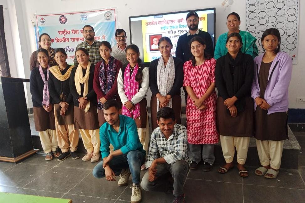 राजकीय महाविद्यालय पाबौ में दिनांक 31 अक्टूबर 2025 को “राष्ट्रीय एकता दिवस” मनाया गया। इस कार्यक्रम में महाविद्यालय के प्राध्यापकों एवं सभी छात्र-छात्राओं द्वारा प्रतिभाग किया गया ।