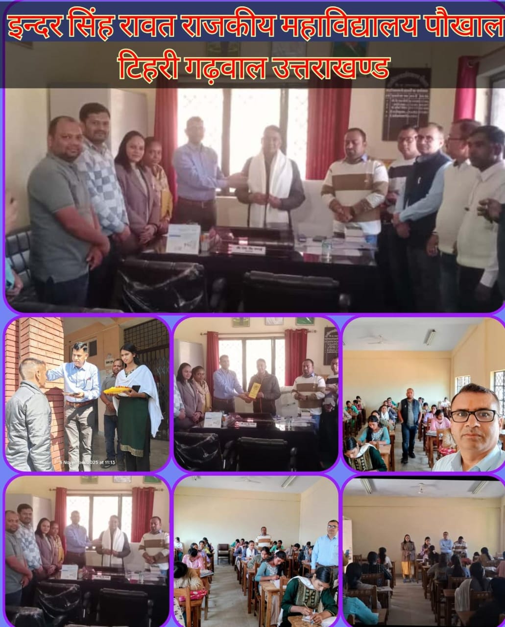 इन्दर सिंह रावत राजकीय महाविद्यालय पौखाल (टिहरी गढ़वाल) में नए प्राचार्य डॉ. सुरेश चंद्र ममंगाई ने दिनांक 6 नवंबर 2025 को कार्यभार ग्रहण किया। महाविद्यालय की ओर से वरिष्ठ प्राध्यापक डॉ.बी.आर. भद्री एवं समस्त शिक्षक व कर्मचारियों द्वारा नये प्राचार्य महोदय का फूल माला तथा पुष्प गुच्छ भेंट कर हार्दिक स्वागत व अभिनंदन किया गया।