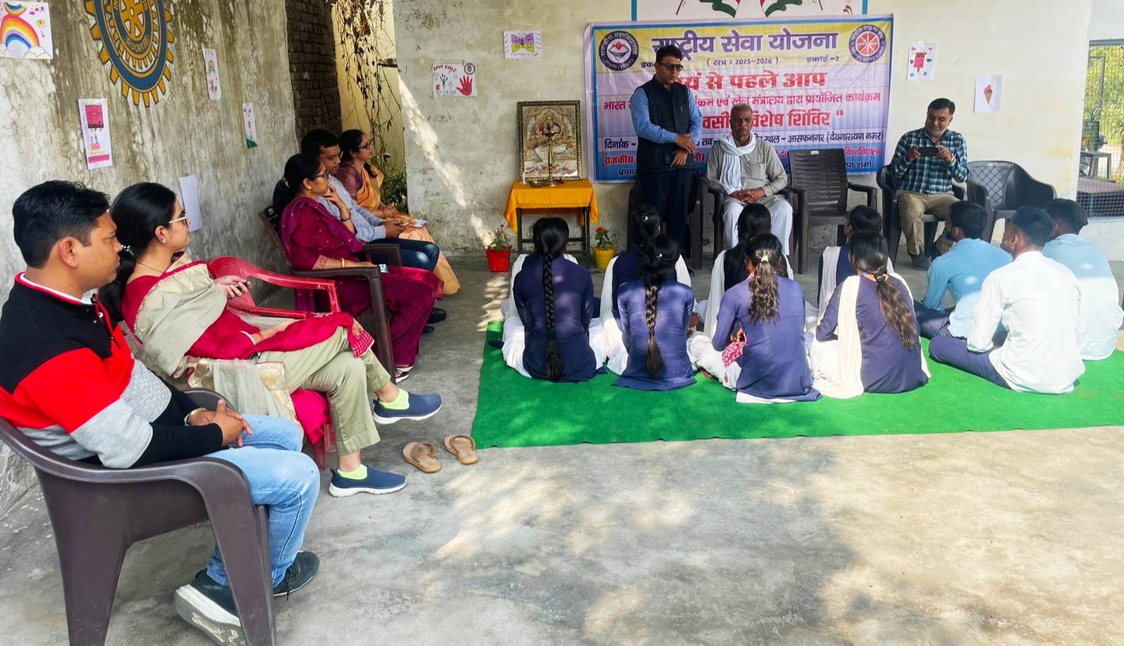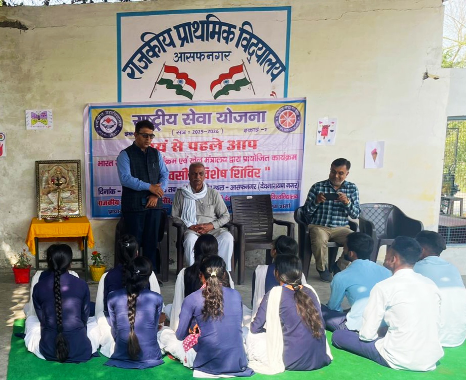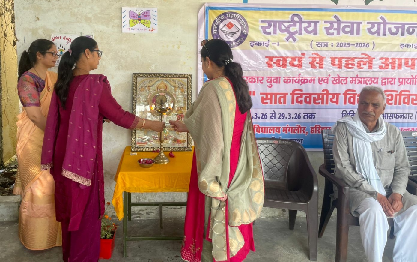आज दिनांक 23/03/2026 को राजकीय महाविद्यालय मंगलौर हरिद्वार की “राष्ट्रीय सेवा योजना इकाई” का प्राथमिक विद्यालय आसफनगर (देवनारायण नगर) में सात दिवसीय विशेष शिविर का शुभारम्भ हुआ, जिसमें मुख्य अतिथी के रूप में ग्राम के विशिष्ट नागरिक श्री मदन सिंह वर्मा रहें। मंच संचालन कार्यक्रम अधिकारी डा० दीपा शर्मा ने किया।