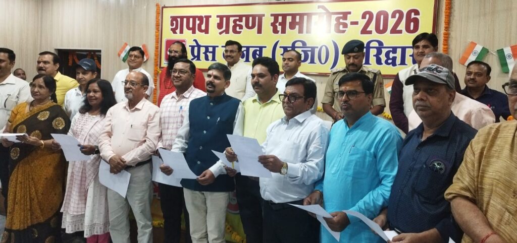 हरिद्वार 02 अप्रैल 2026- जनपद भ्रमण पर पहुंचे मुख्य सचिव आनन्द बर्द्धन प्रेस क्लब हरिद्वार के नवनिर्वाचित कार्यकारणी के शपथ ग्रहण समारोह में मुख्य अतिथि के रूप में शिरकत की,इस अवसर पर मुख्य सचिव ने नव निर्वाचित प्रेस क्लब के अध्यक्ष धर्मेंद्र चौधरी,महासचिव सूर्यकांत बेलवाल को पद एवं गोपनीयता की शपथ दिलाई।