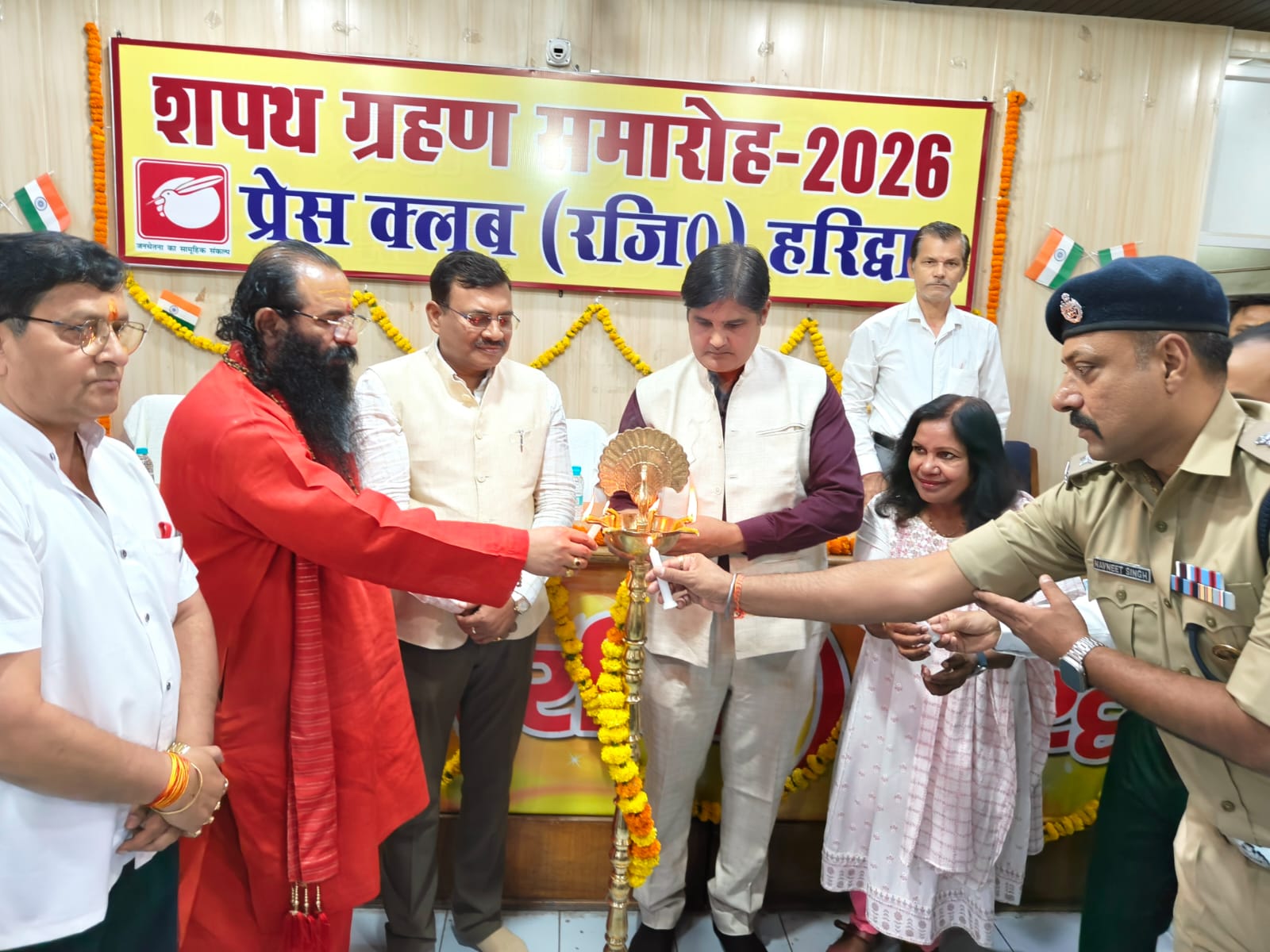 कार्यक्रम में विशिष्ट अतिथि निरंजनी अखाड़े के सचिव श्रीमहंत रविंद्र पूरी महाराज ने कार्यकारणी के नवनिर्वाचित पदाधिकारियो जिसमें दीपक मिश्रा,देवेंद्र शर्मा उपाध्यक्ष, कुलभूषण शर्मा,जोगेंद्र सिंह मावी सचिव,महताब आलम सांस्कृतिक समारोह सचिव,तनवीर अली प्रचार सचिव,काशीराम सैनी को कोषाध्यक्ष पद की गोपनीयता की शपथ दिलाई।