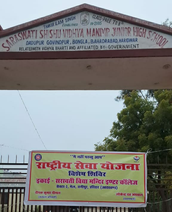 सरस्वती विद्या मंदिर इंटर कॉलेज रानीपुर हरिद्वार की राष्ट्रीय सेवा योजना इकाई का विशेष शिविर शुभारंभ