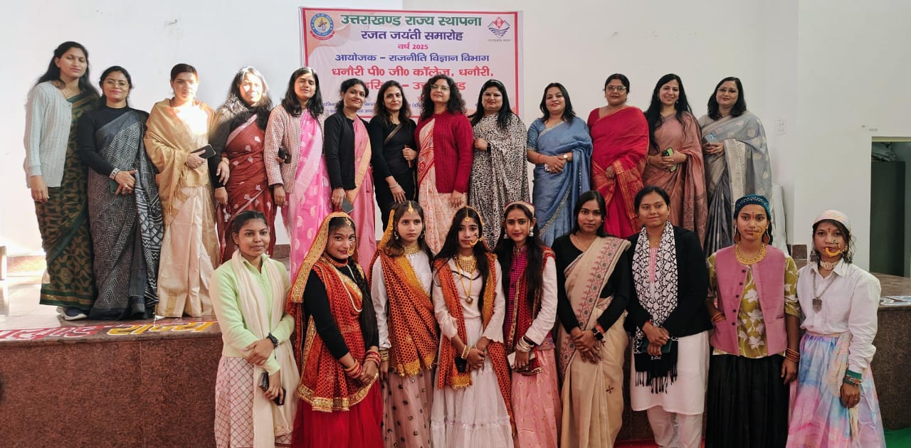 उत्तराखंड राज्य के स्थापना दिवस की रजत जयंती के उपलक्ष्य में धनौरी पी.जी. कॉलेज में एक भव्य उत्सव का आयोजन किया गया। इस गौरवशाली अवसर पर, महाविद्यालय के सचिव श्री आदेश कुमार सैनी जी (मुख्य संरक्षक) तथा नेशनल इंटर कॉलेज, धनौरी के प्रबंधक समिति के सदस्य श्री मोहम्मद अली असगर की गरिमामय उपस्थिति रही।
