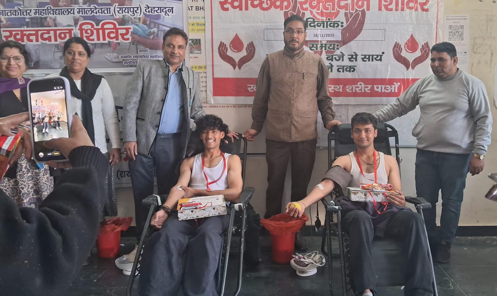 राजकीय स्नातकोत्तर महाविद्यालय मालदेवता रायपुर में राष्ट्रीय सेवा योजना, रोवर्स एवं रेंजर्स, रेड क्रॉस सोसाइटी एवं वीर फाउंडेशन के संयुक्त सहयोग से आज दिनांक 18 /11/ 2025 को रक्तदान शिविर का आयोजन किया गया ।
